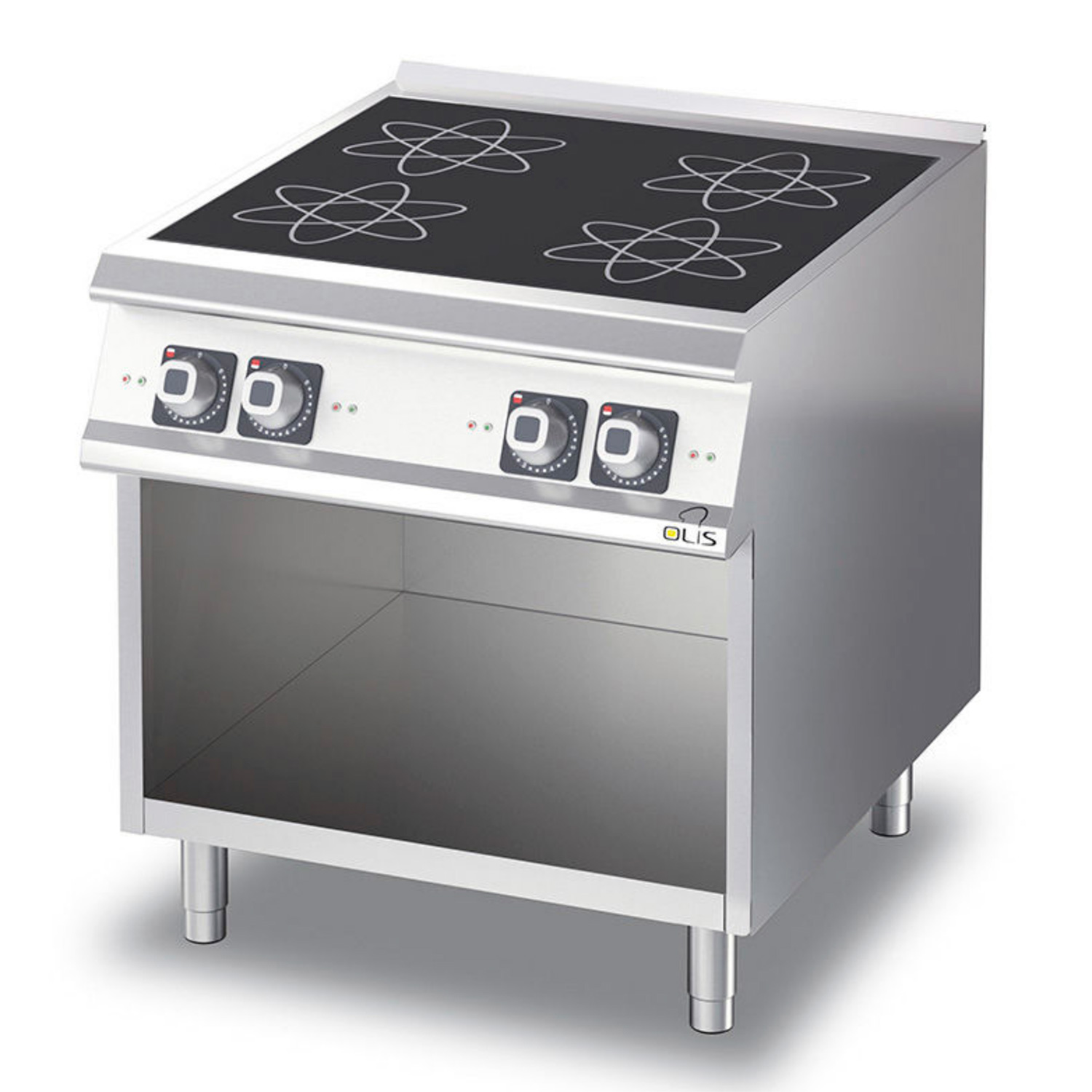 4 apvalios, pažymetos piešiniu kaitinimo zonos Ø 230 mm, po 3,5 kW. kiekviena;