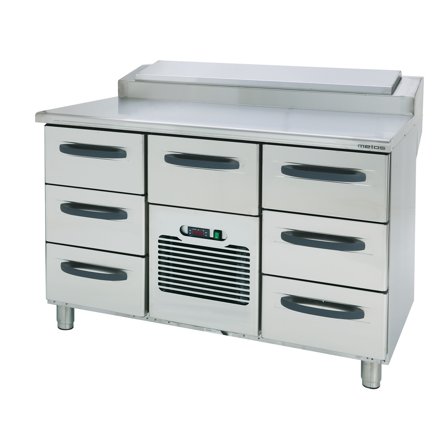 Picu stalas su šaldomomis voniomis 3 x GN 1/3 ir su 7 šaldomais stalciais 7 x GN 1/1 – 150; nerudijancio plieno konstrukcija;