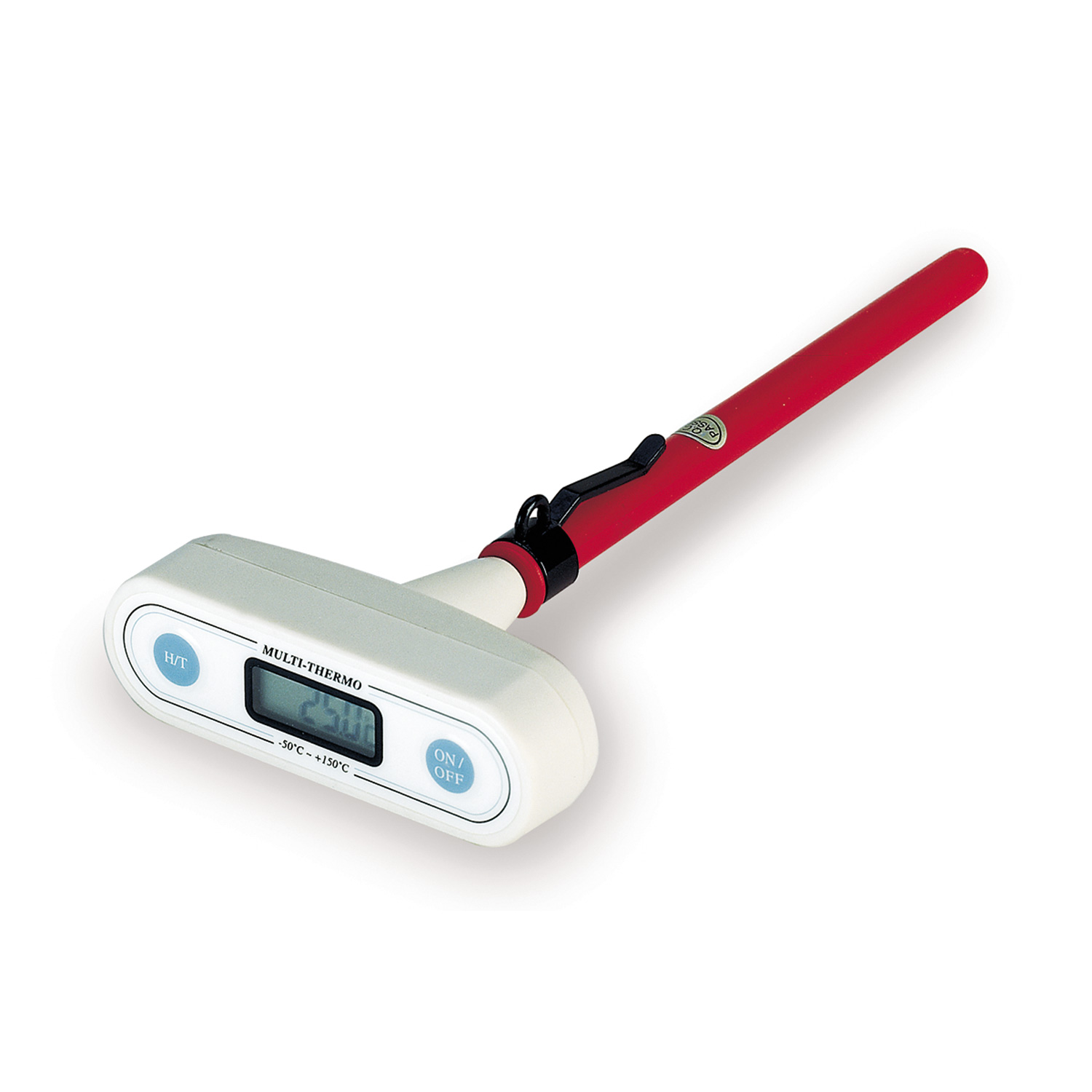 skira 0,1°C ribose nuo -19,9 iki +150°C; tikslumas:+/- 0,8°C ribose nuo -20 till +120°C; ijungimo/išjungimo ir fiksacijos mygtukas;