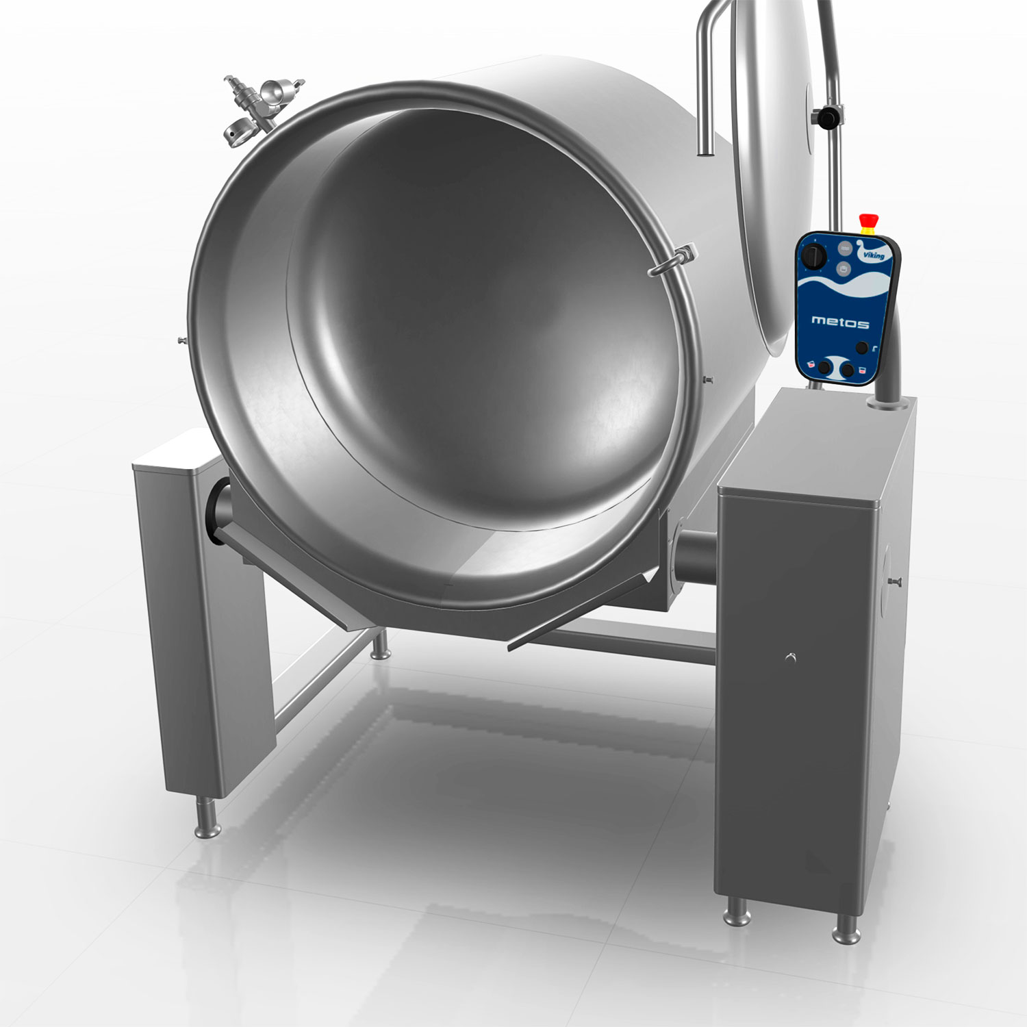 valdymo panelė pakelta virš katilo, kad būtų geras matomumas, kad nepažeistų chemikalai ir garai;